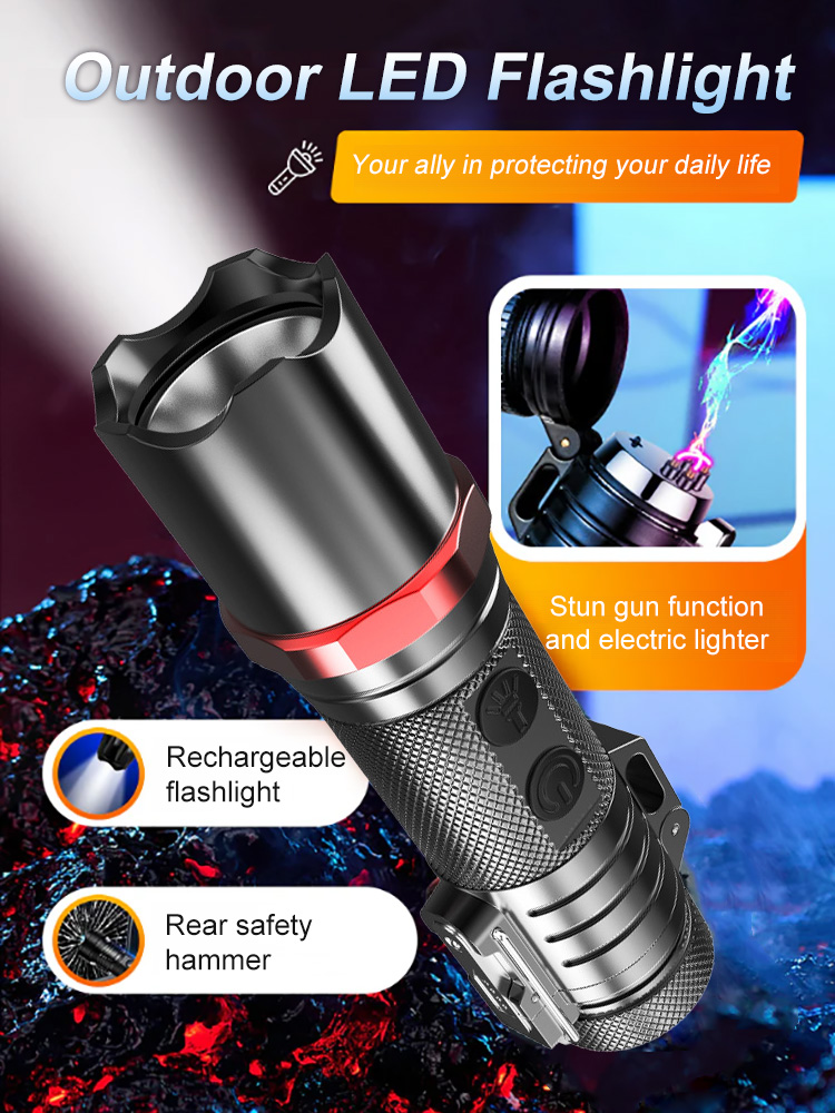 [Self-defense waterproof and windproof] Outdoor camping dual arc flashlight