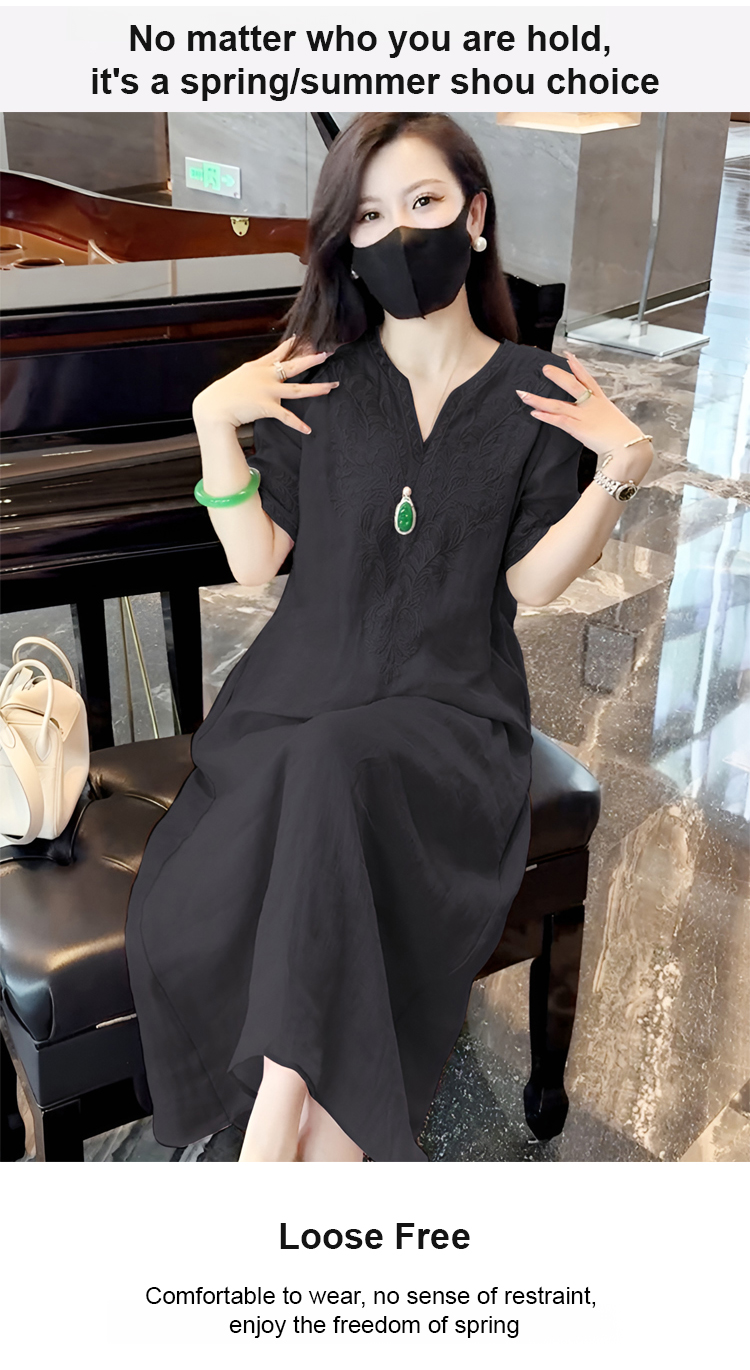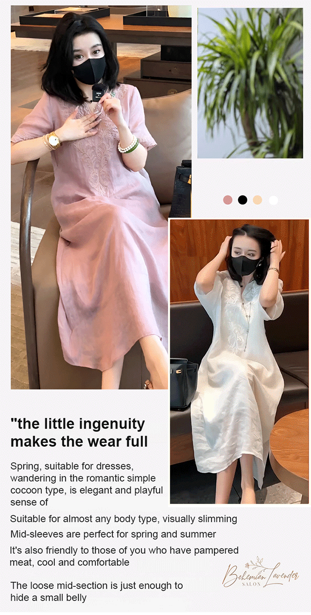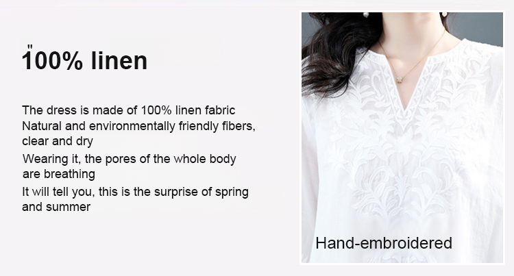 High-end ramie embroidered dress