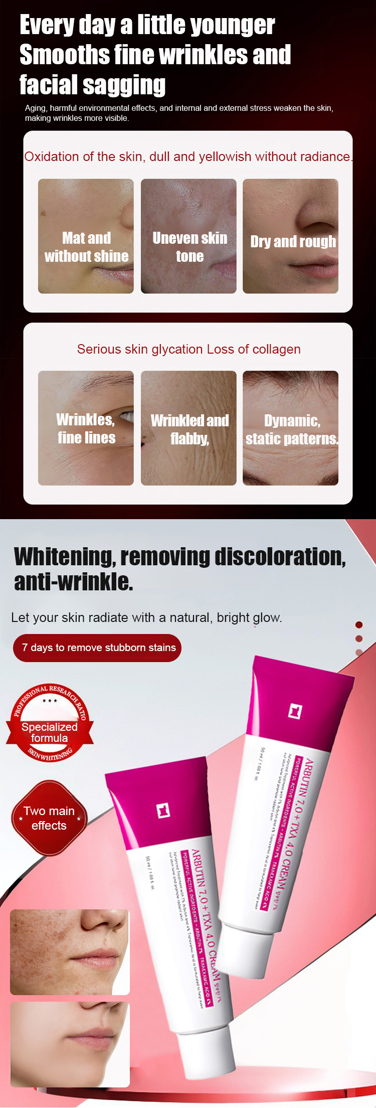 Arbutin and Niacinamide Anti-Wrinkle Cream📊99.7% brightening rate, 94.3% reduction in dark spot area, and 95% reduction in wrinkle visibility.