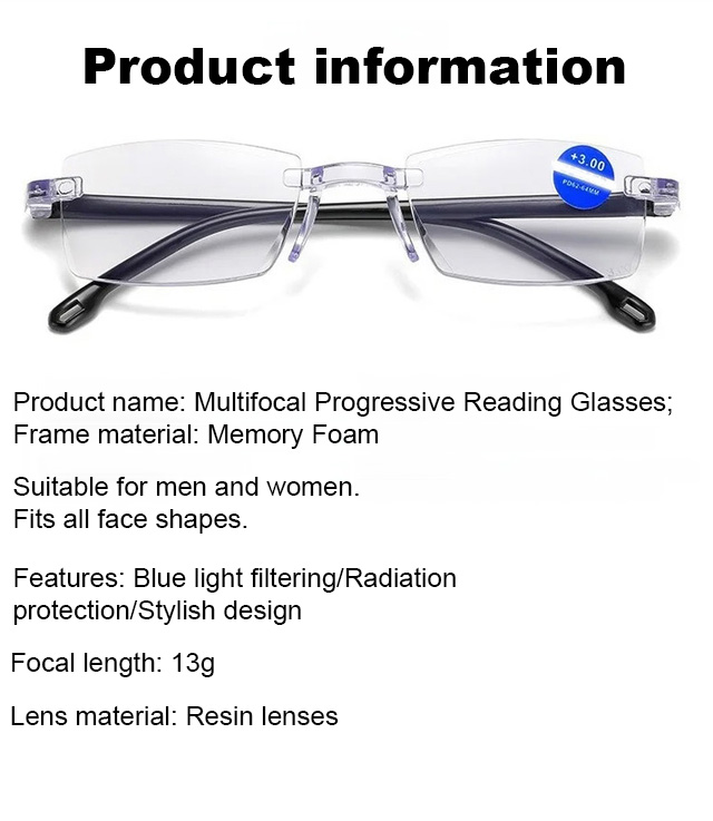 👓One lens solves multiple vision problems, suitable for presbyopia, myopia, and astigmatism, eliminating the need for frequent glasses replacements.