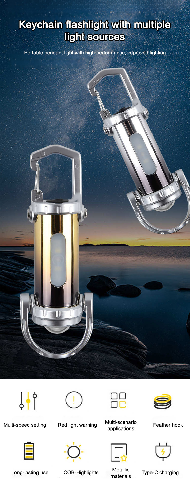 ⚡ 20000mAh high-capacity battery, can charge your phone/laptop more than ten times ⏱️ 10-minute fast charge for quick power replenishment 🛡️ Metal casing, waterproof and drop-resistant, sturdy and durable 👜 Compact and portable 🏕️ Suitable for night walks, camping, patrols, construction sites, and power outage emergencies